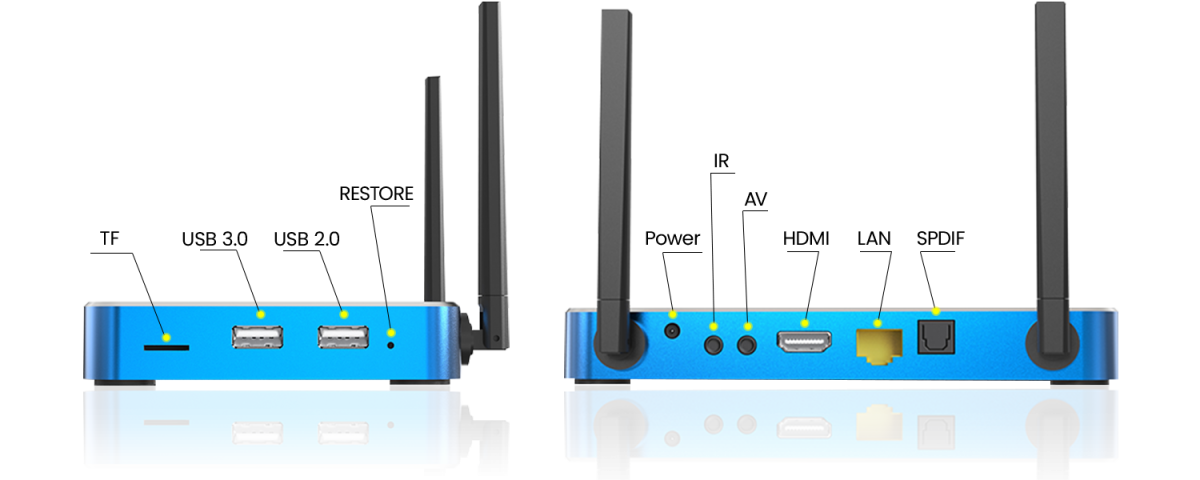 The SuperBox S6 Max excels with exceptional data transfer and processing speeds. It features 2.4G/5G dual-band WiFi and supports WiFi 6, complemented by 1000 Mbps Ethernet ports. Dual external antennas ensure smooth streaming, while Bluetooth 5.2 provides seamless connectivity with the latest tech devices.